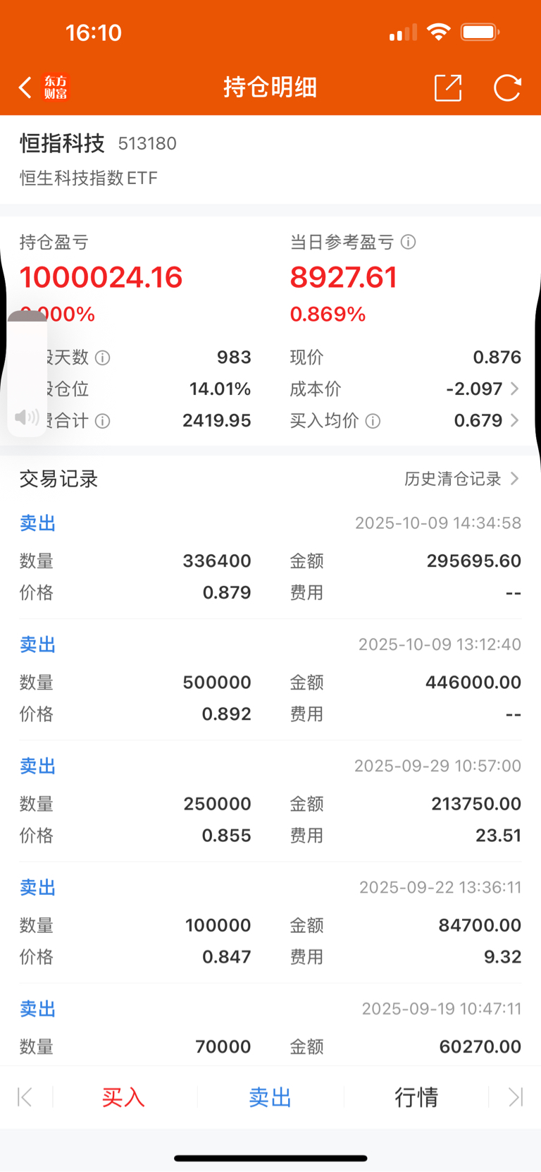 $恒生科技指数ETF(SH513180)$ 983天,差7天1000天,基本清空了,感谢恒生科技