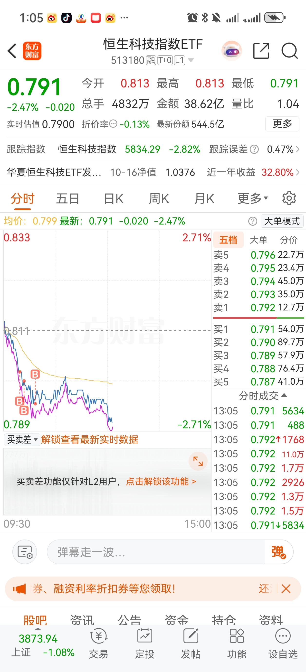 $恒生科技指数ETF(SH513180)$ 我是新来的韭菜 是我买崩的