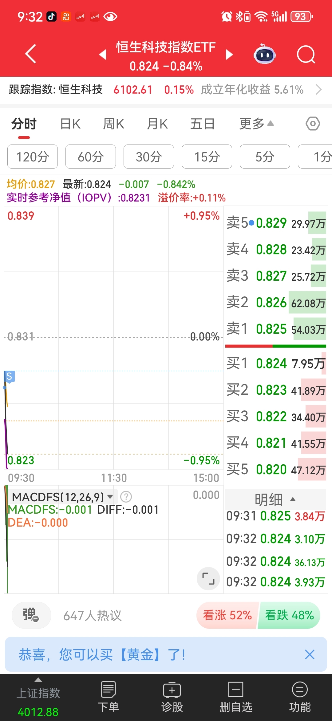 $恒生科技指数ETF(SH513180)$ 开盘不妙卖等跌