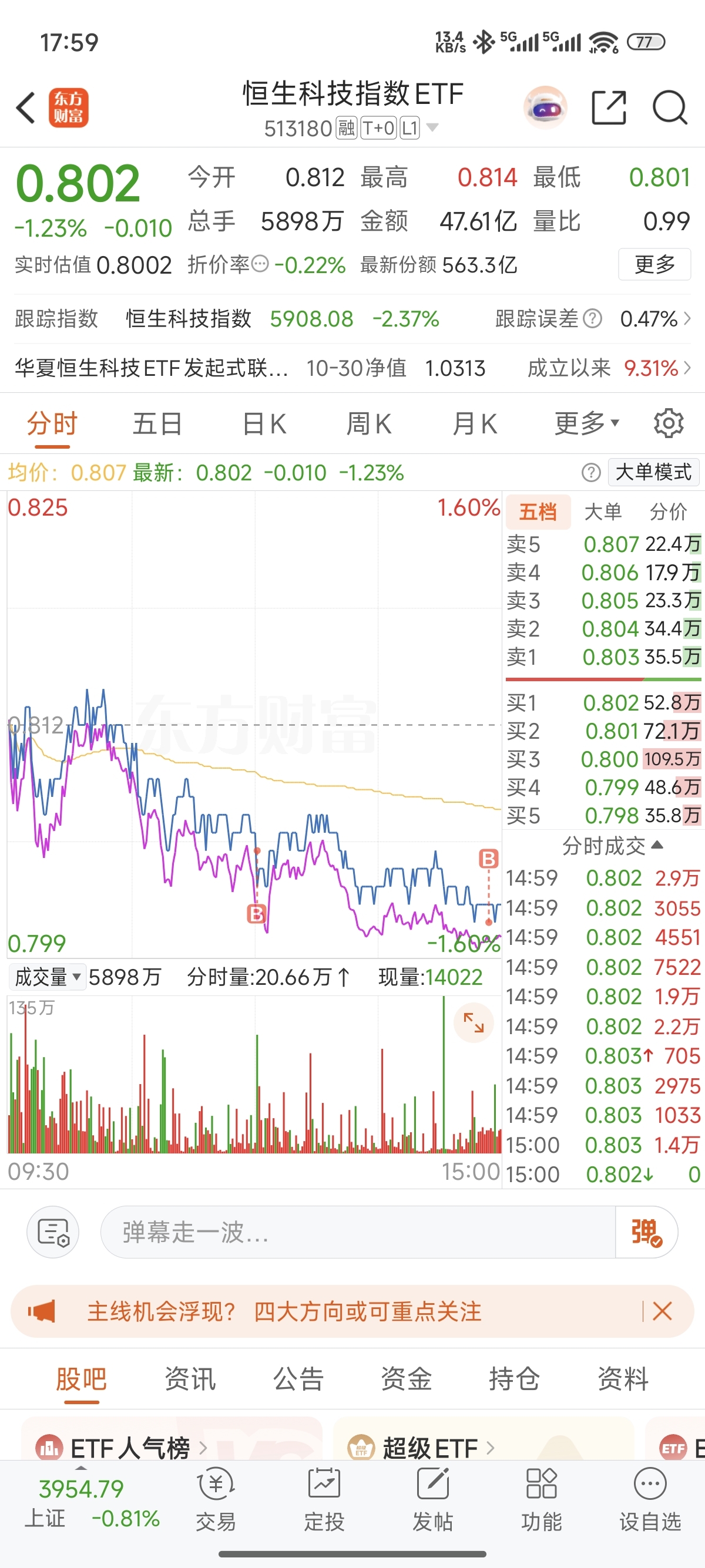 $恒生科技指数ETF(SH513180)$ 睡醒起来一看,0.801买入成功了,太恐怖了,
