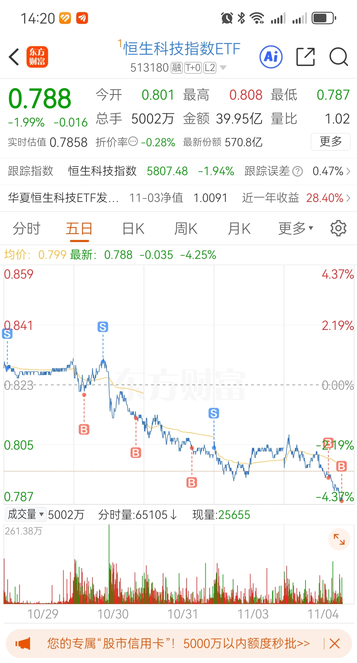 $恒生科技指数ETF(SH513180)$ 已经看不到底了