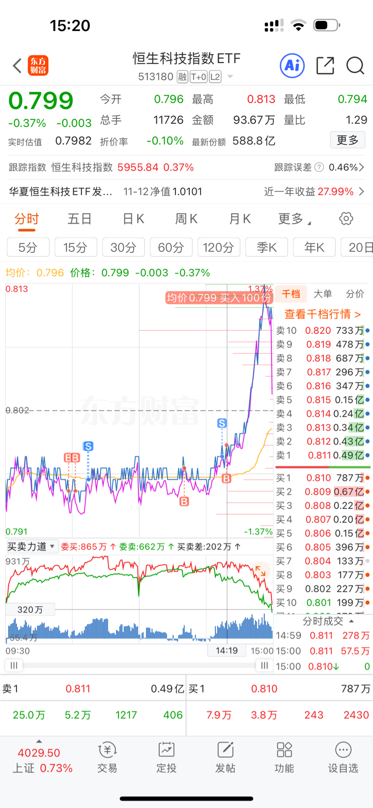 卖完起飞,忘留底仓,幸好就买回来一百股