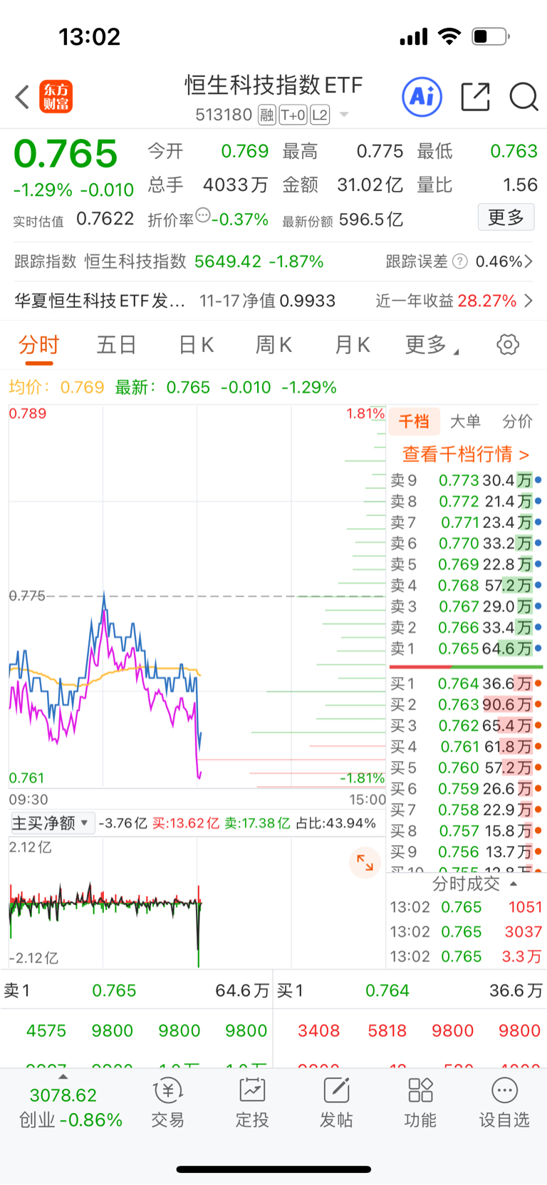 $恒生科技指数ETF(SH513180)$ 0.778的本,要是0.774卖掉清仓也才亏3厘,做套一下就回来了。可惜卖了互联网,唯独没操作你