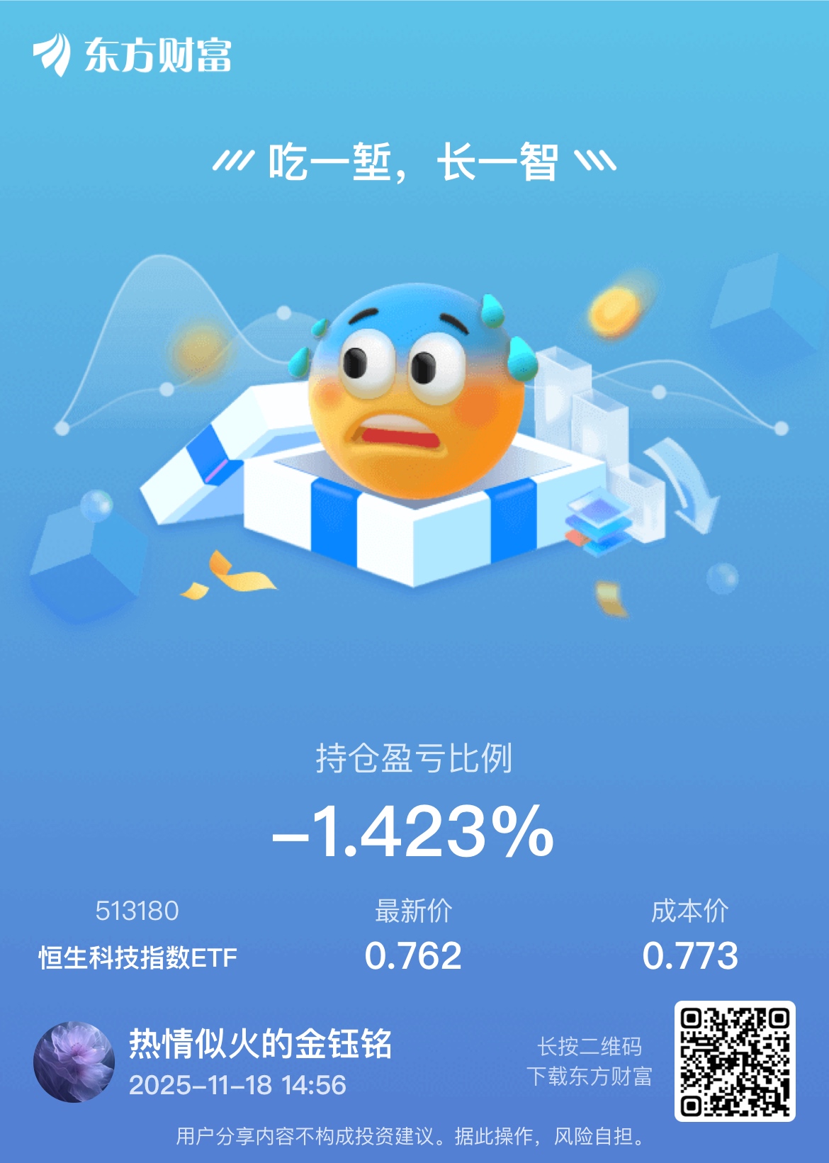 $恒生科技指数ETF(SH513180)$ 买了就跌,跌了就补,补了就被套,套了就跌的更狠,受不了就割,割了就涨,涨了就追,追了就跌,跌了就补,补了就持续下跌,然后隔了就再涨……