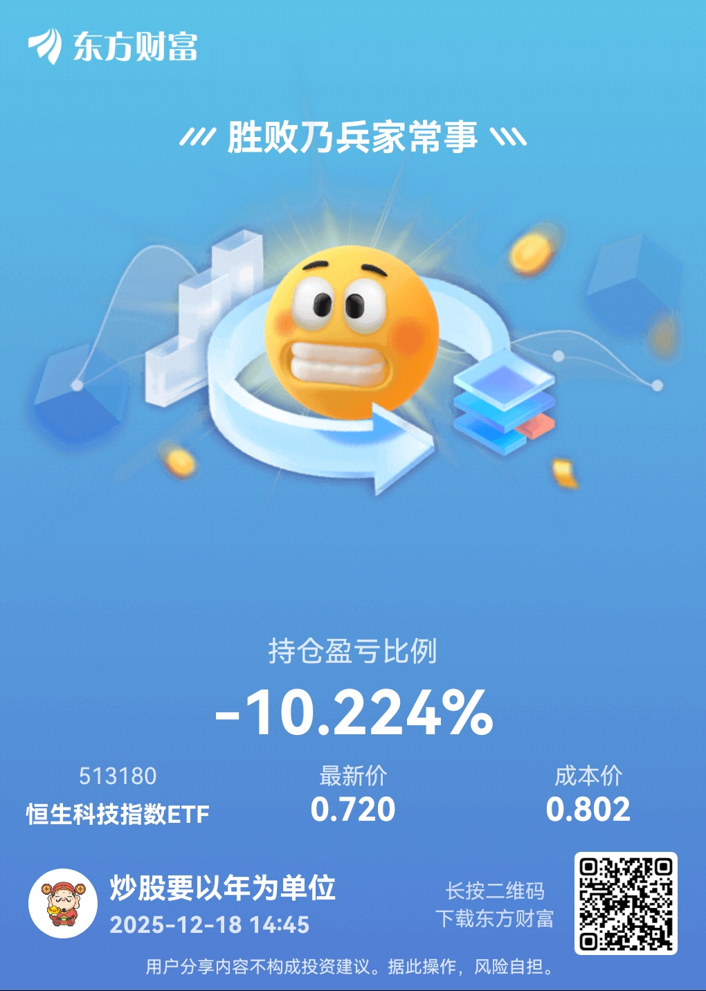 $恒生科技指数ETF(SH513180)$ 留了点底仓结果都亏10个点,幸好只是底仓
