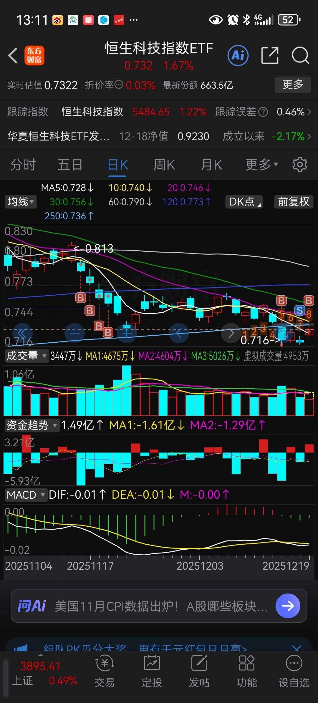 $恒生科技指数ETF(SH513180)$ 昨天卖,今天买亏惨了