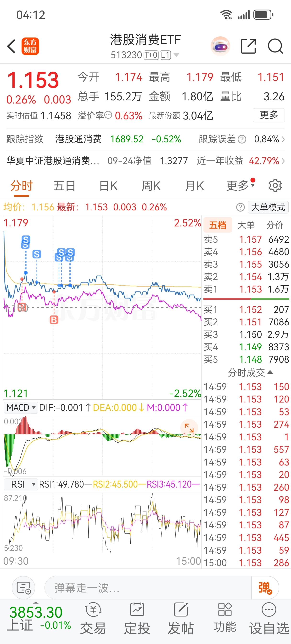$港股消费ETF(SH513230)$ 赚点就跑,不敢贪心了!