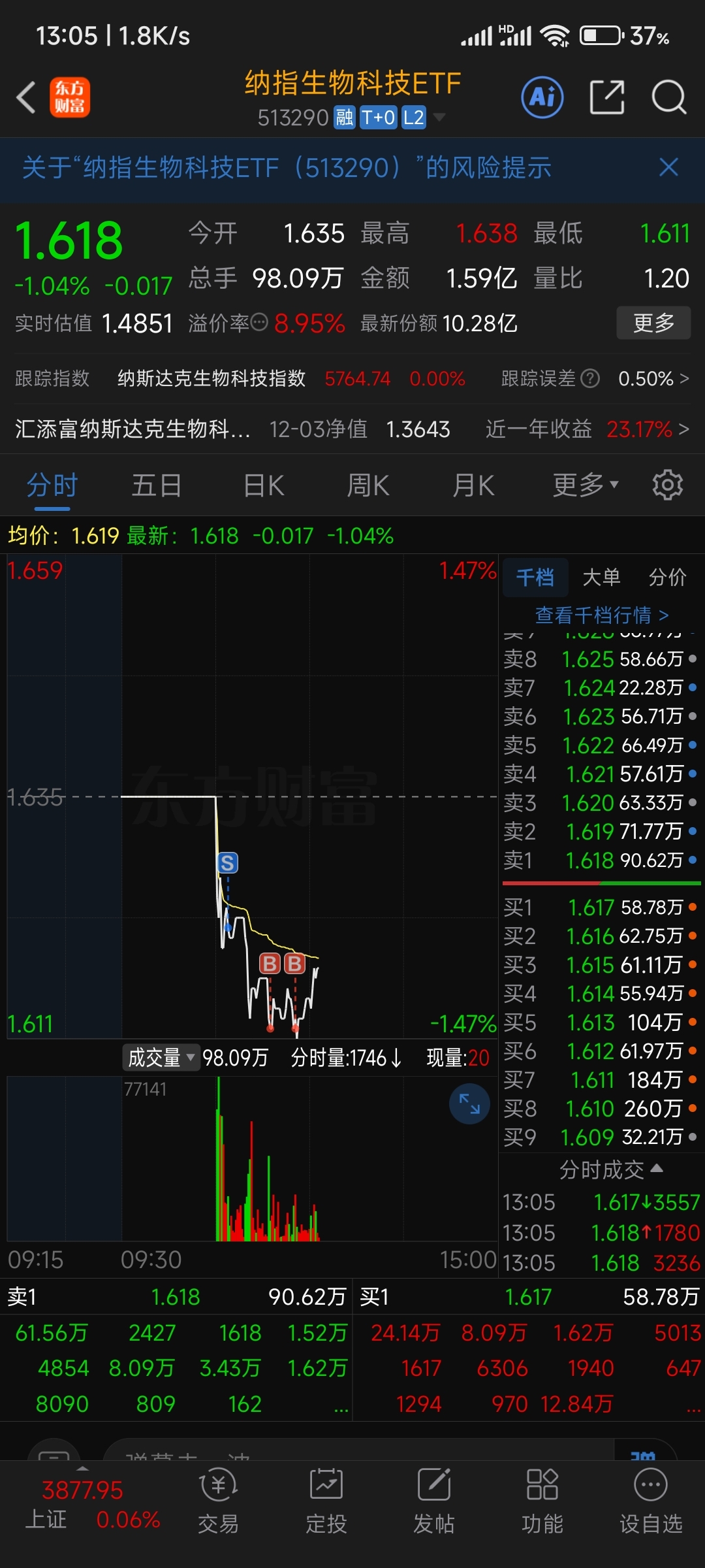 纳指科技没拿住,现在心好痛。你是生物科技好歹也带了科技,下午拉红好吗。