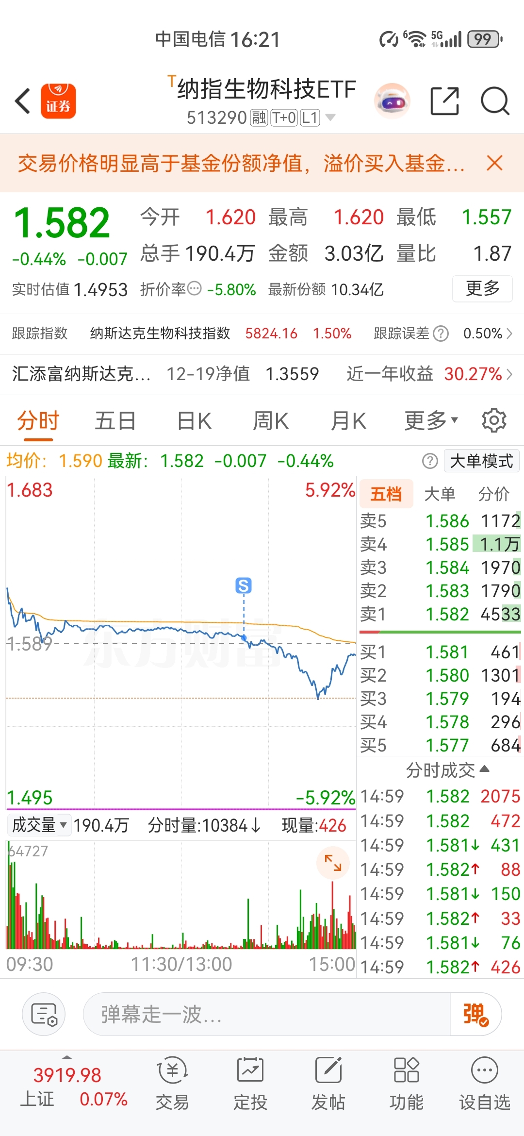 $纳指生物科技ETF(SH513290)$ 挂的单不买,手动卖,你赢了。