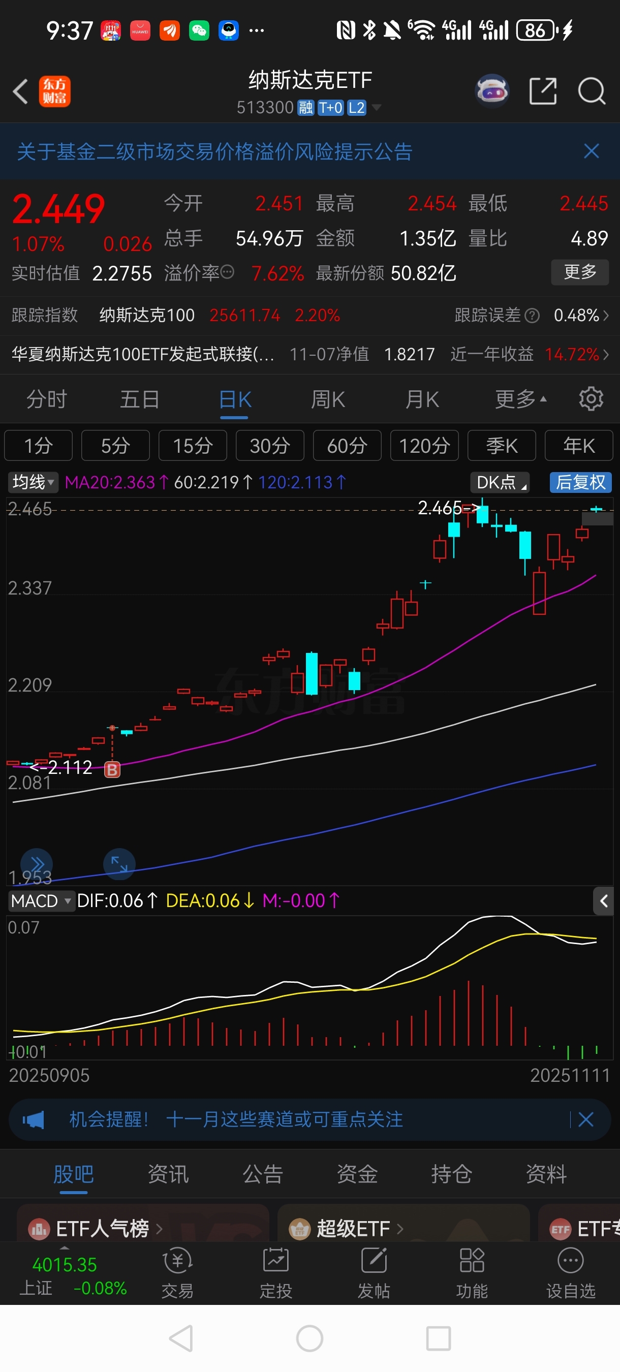 $纳斯达克ETF(SH513300)$ 虽然每天涨的不多,但是一直涨就行