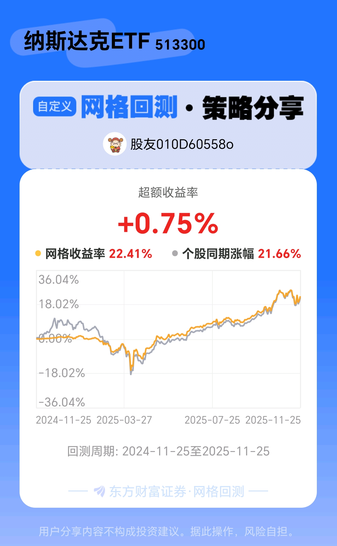 #条件单交流# #网格交易晒单#我使用网格交易回测了最关心的个股,朋友们走过路过看看我的收益~$纳斯达克ETF(SH513300)$