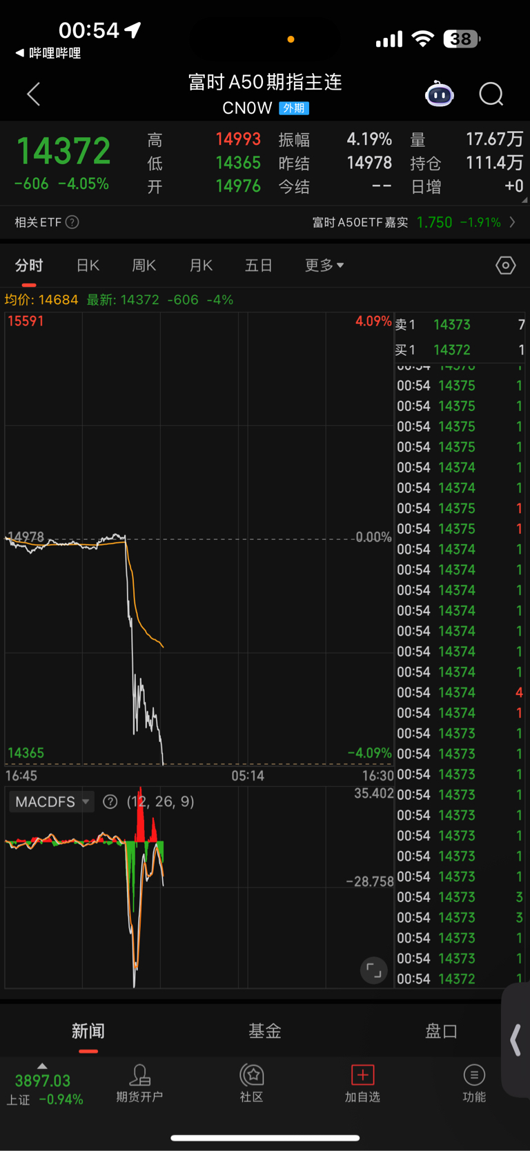 $中韩半导体ETF(SH513310)$ 出事了,周一要凉 大盘期指断崖跌了近五个点,和四月份那时候差不多。