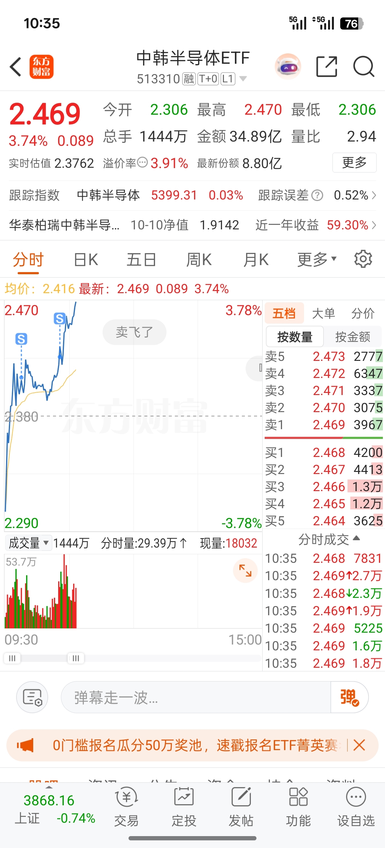 $中韩半导体ETF(SH513310)$ 成功卖飞 我是