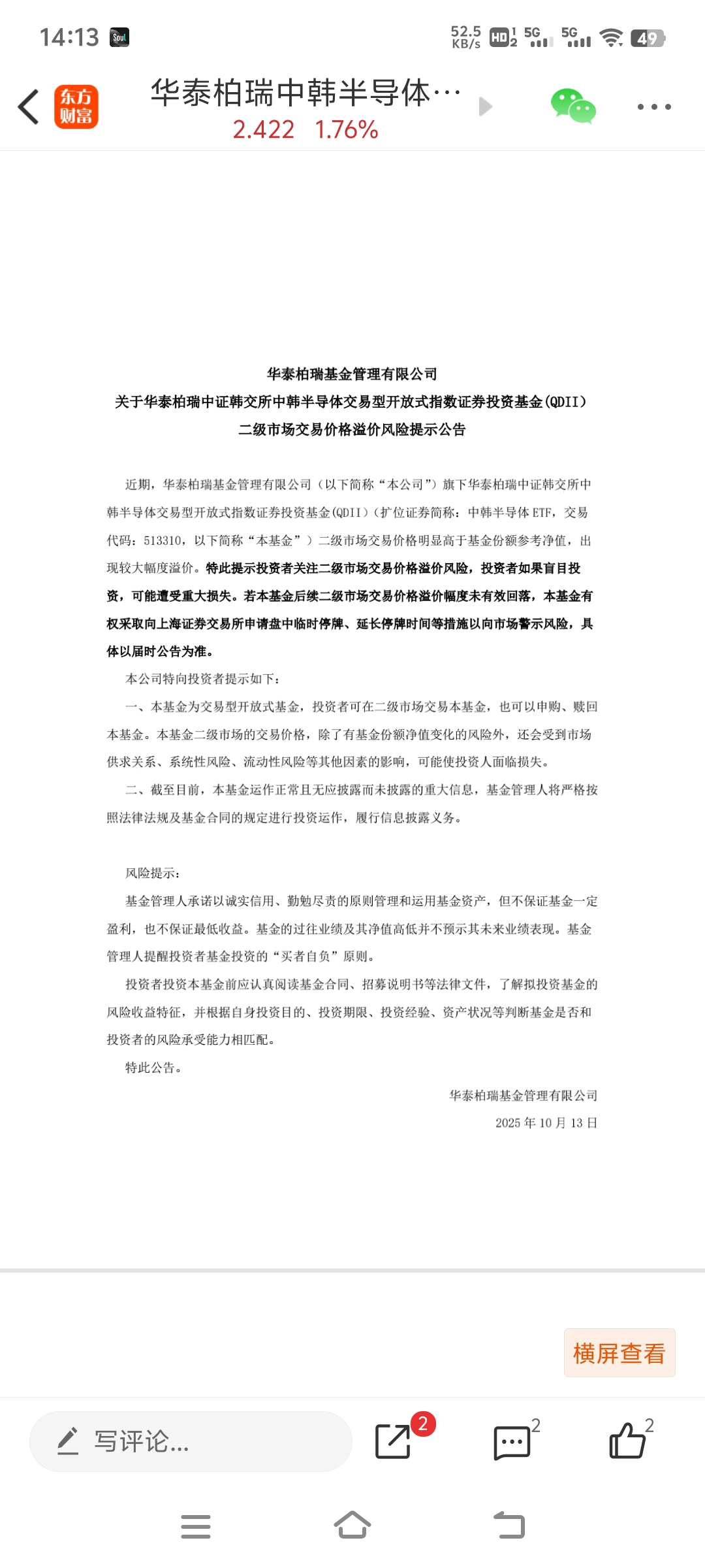 主力撤资了,发通知了。今天绝对会杀溢价。不然明天直接这个基金要进小黑屋