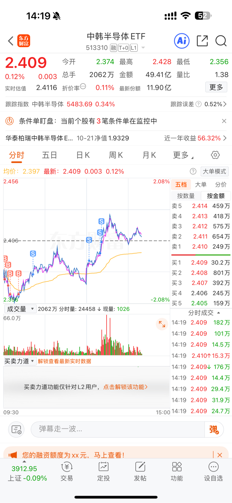 $中韩半导体ETF(SH513310)$ 各位老铁,今日可好啊