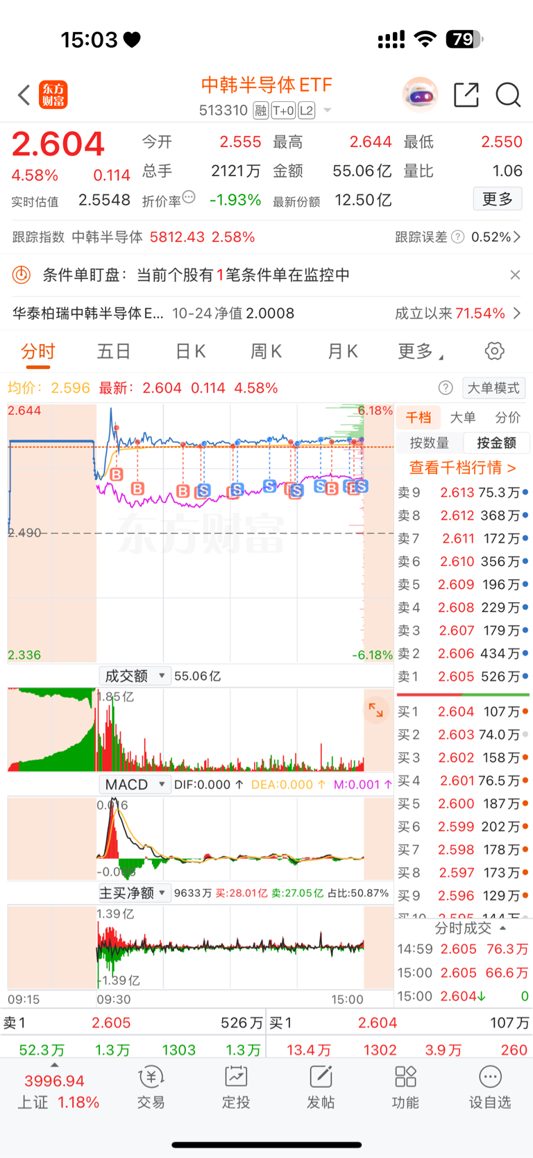 $中韩半导体ETF(SH513310)$ 第一天,试试水