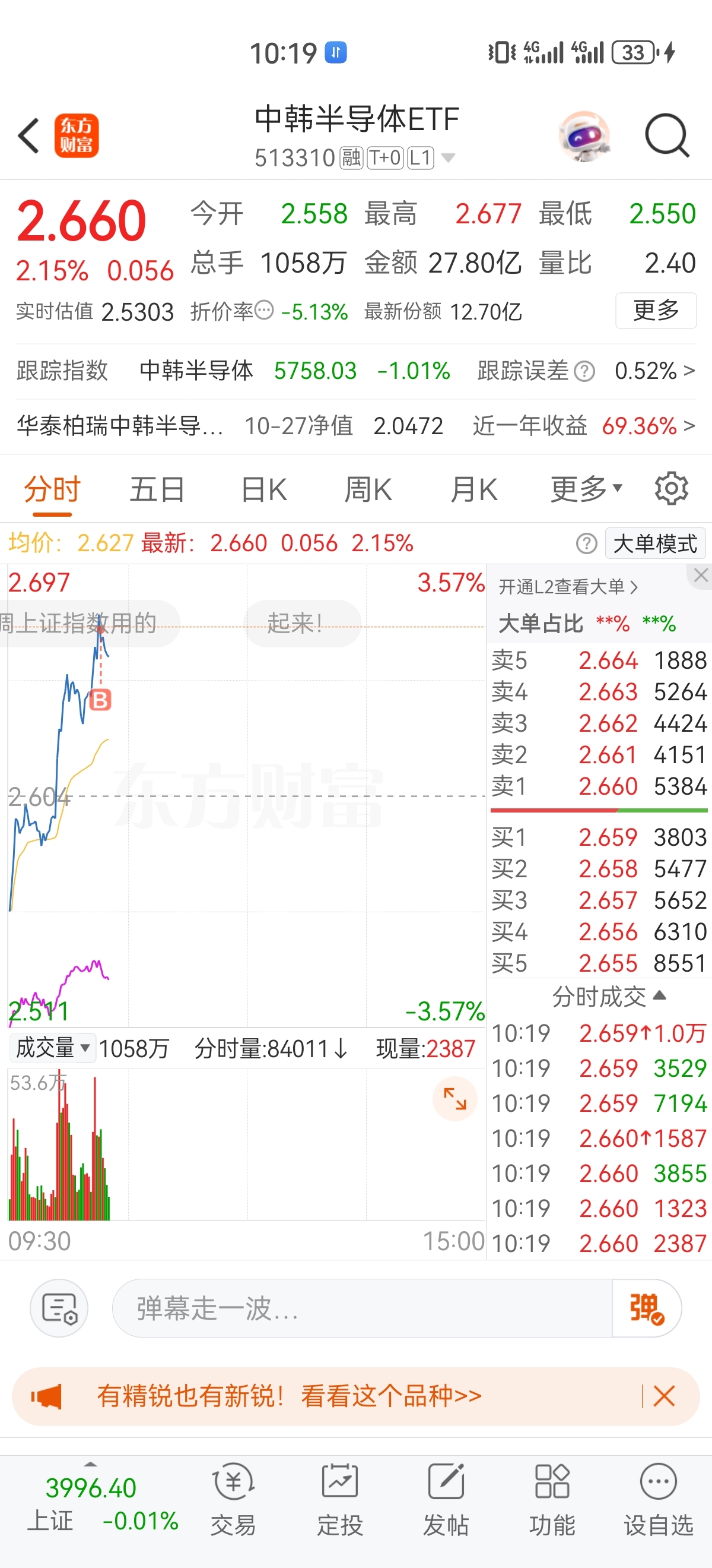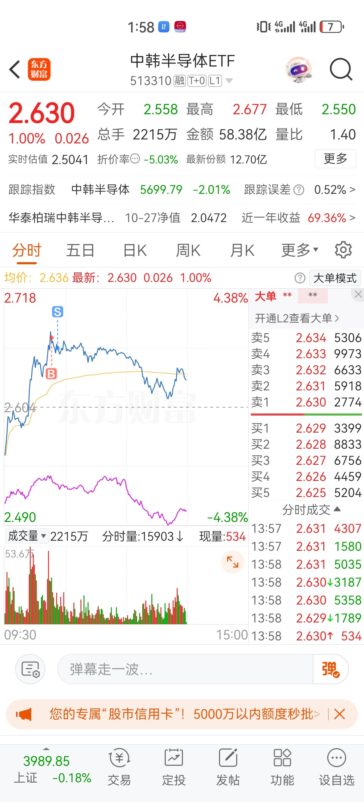 $中韩半导体ETF(SH513310)$ 买崩它了