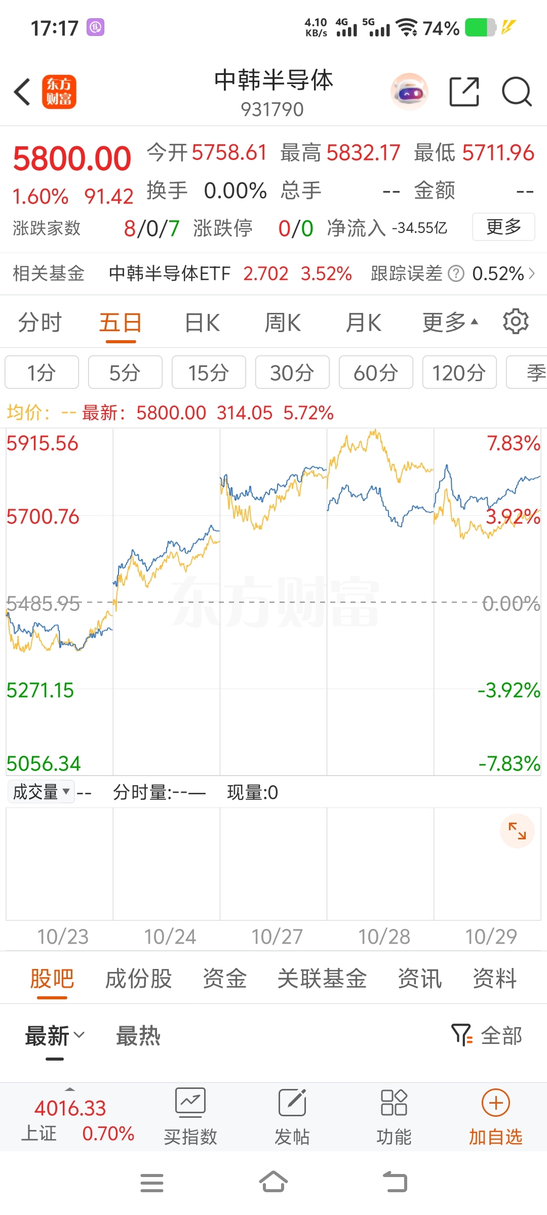 $中韩半导体ETF(SH513310)$ 溢价已经6%了