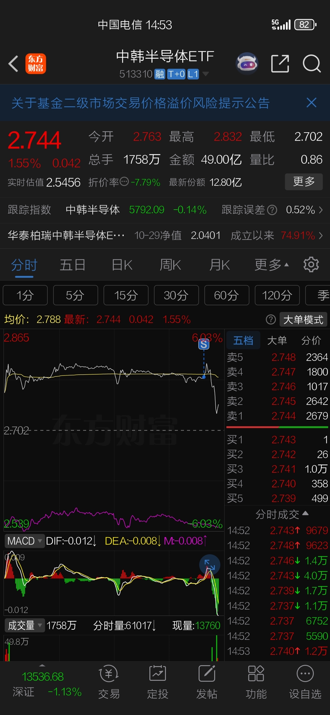 $中韩半导体ETF(SH513310)$ 机智一匹