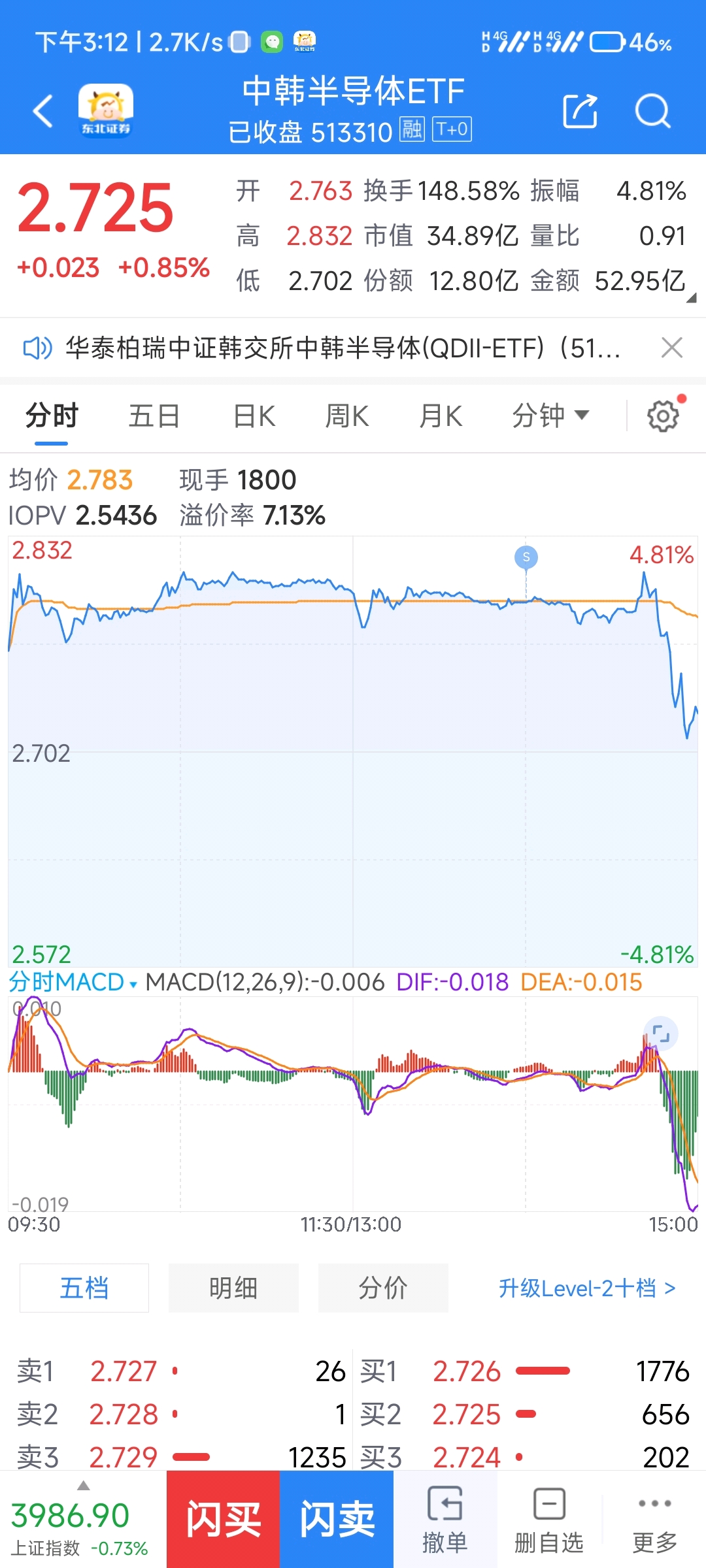 $中韩半导体ETF(SH513310)$ 成功逃顶