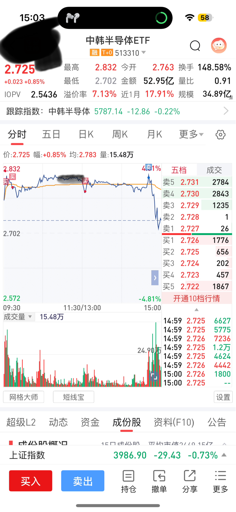 $中韩半导体ETF(SH513310)$ 真的爽!极限卖了!虽然赚的少,但是至少没亏!不然裤头都就没了