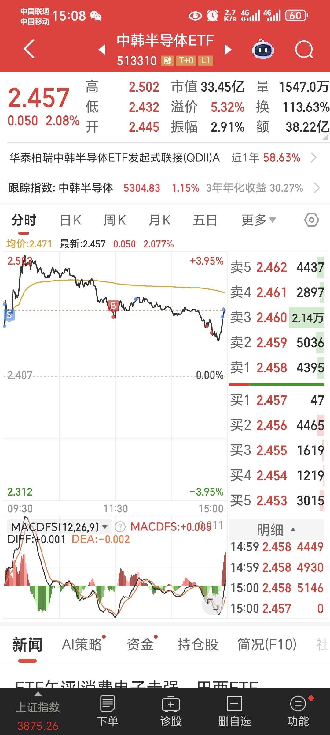 $中韩半导体ETF(SH513310)$ 开盘跑早了,中间2次操作还可以