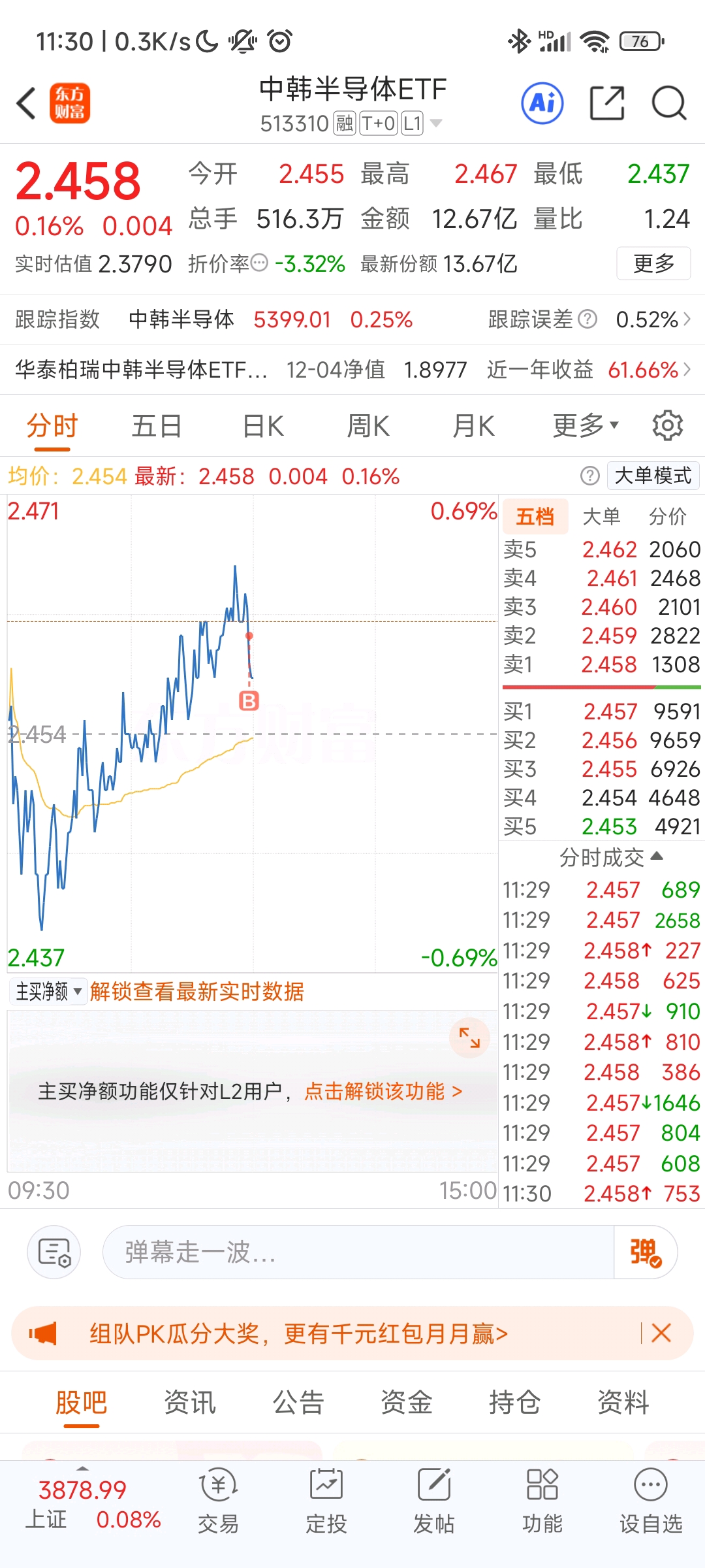 $中韩半导体ETF(SH513310)$ 对不起大家,买了2手就大跳水