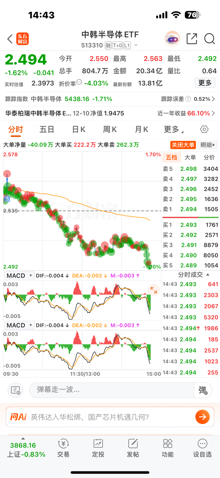 $中韩半导体ETF(SH513310)$ 通常都是被挂的那个,今天逃过一劫