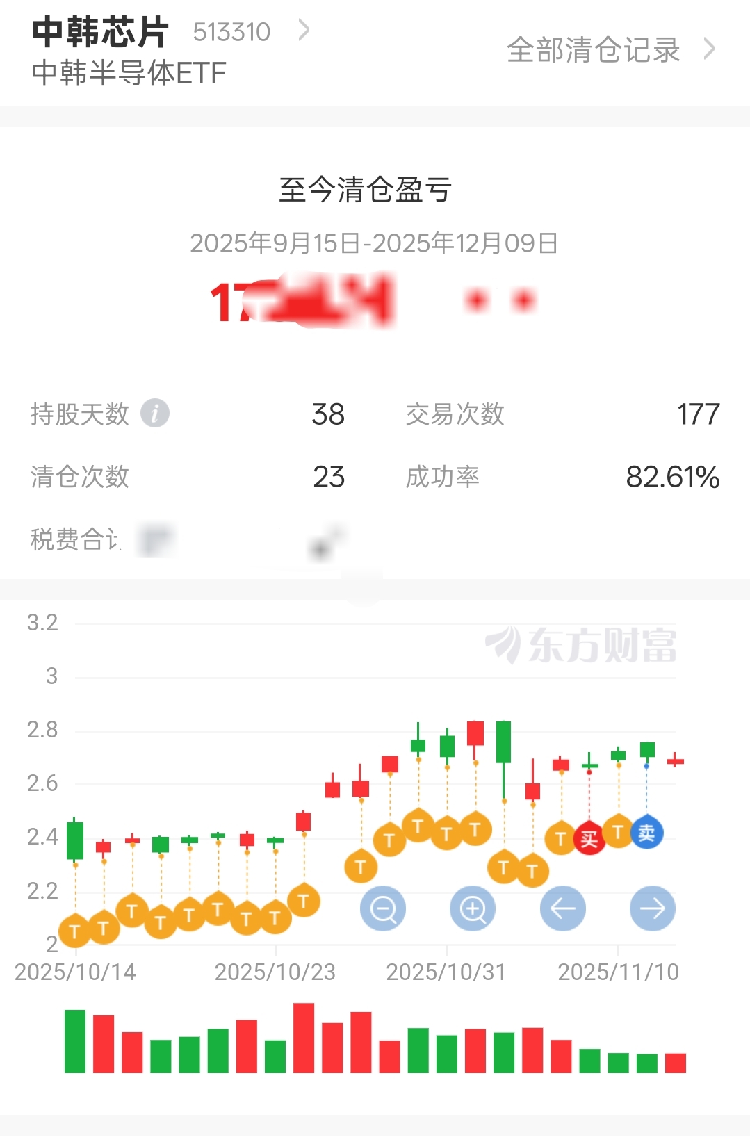 $中韩半导体ETF(SH513310)$ 反复做T交易177次成功率82%