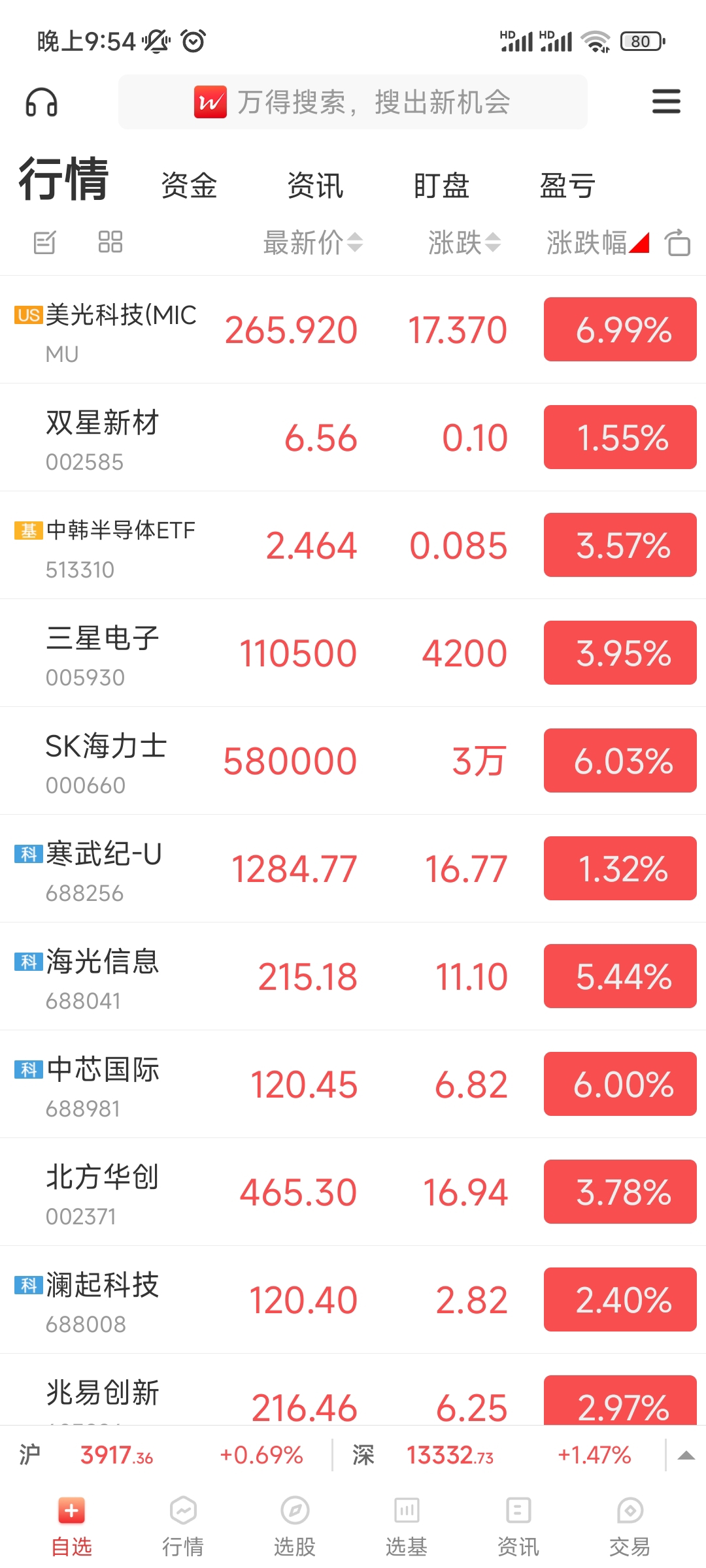 三星和海力士基本不差,国内占比高的几个也可以。感觉明天大有希望,继续拿着吧。