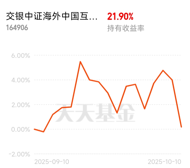互联网业绩还行不错,持有收益率达21.9%,继续拿着吧!$交银中证海外中国互联网