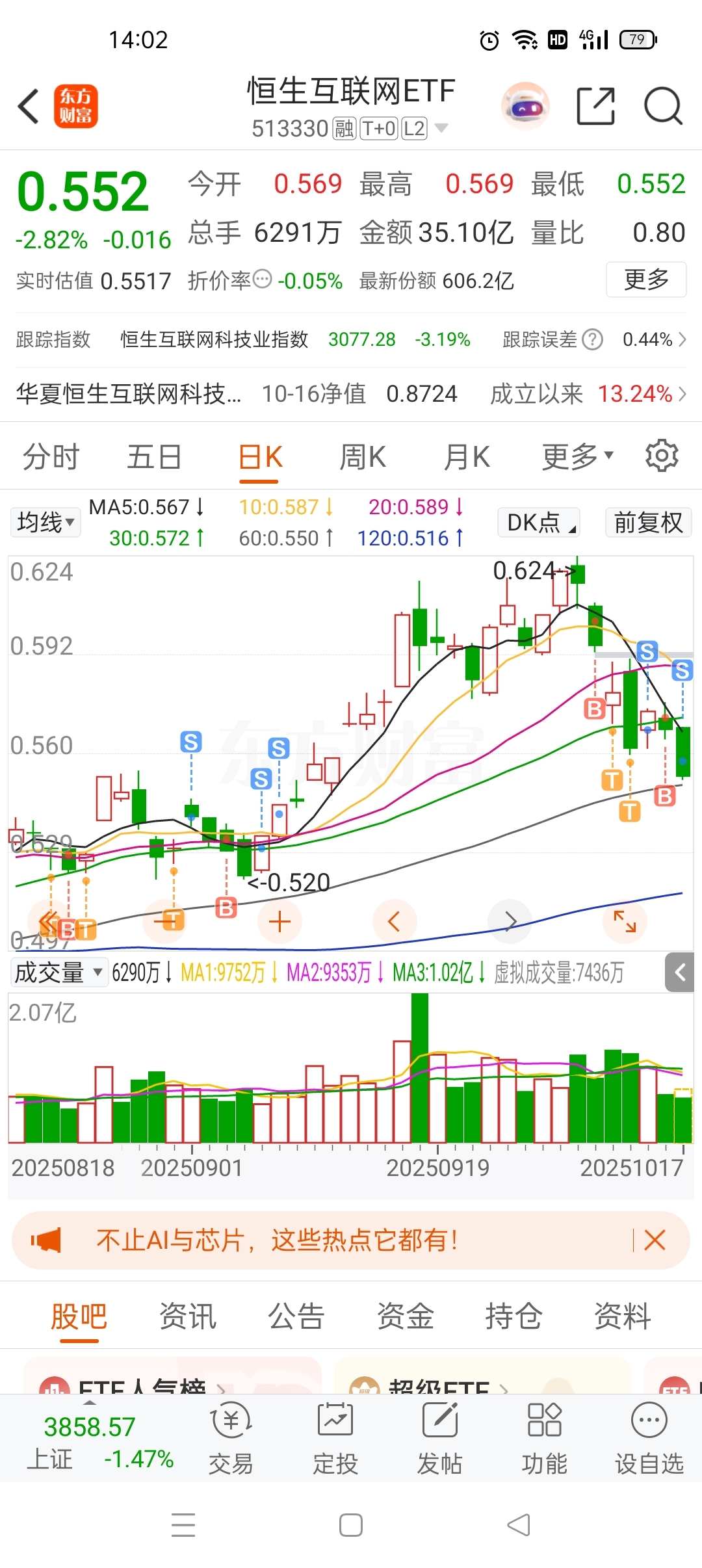 $恒生互联网ETF(SH513330)$ 上涨踏空,下跌开始我就买入到今天割肉清仓了,真是有毒