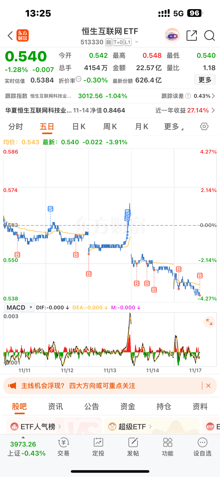 $恒生互联网ETF(SH513330)$ 今天留个536.下了