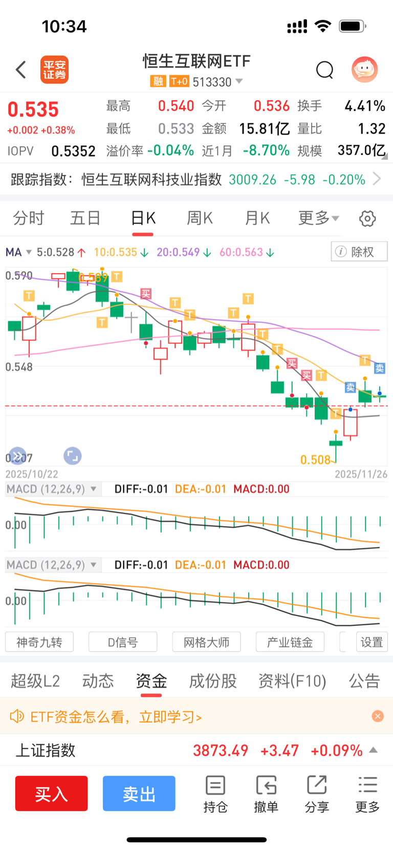 $恒生互联网ETF(SH513330)$ $腾讯控股(HK|00700)$ $阿里巴巴-W(HK|09988)$ 有粉丝佩服我昨天的预判,问我今天怎么操作,来拿去做参考。15万减仓玩,537已出,532下午应该可以接回来。因为两个老大哥早上集合竞价信号已经给的太明显了