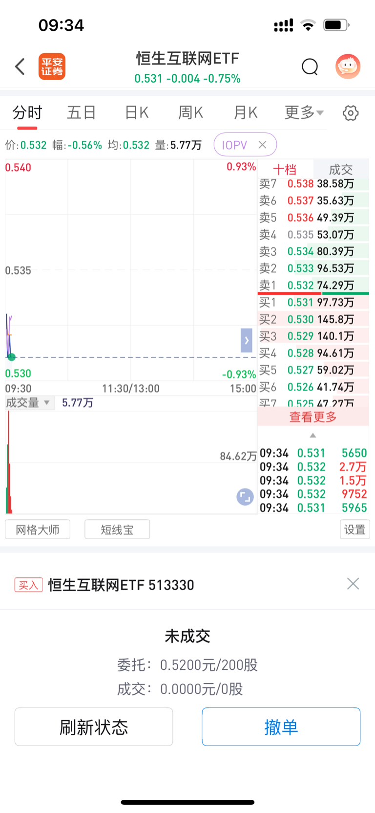 两个个股清仓试水,今天涨跌都和我没关系,因为都卖不出去。至于513330,大家就希望我这2手不要买入吧。