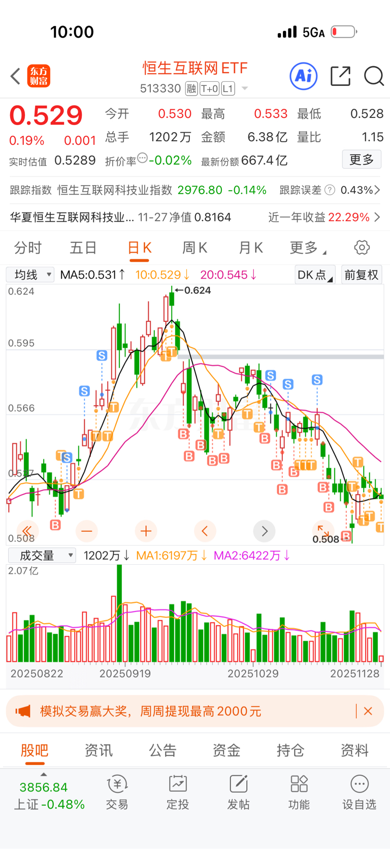 $恒生互联网ETF(SH513330)$ 完美#炒股日记#