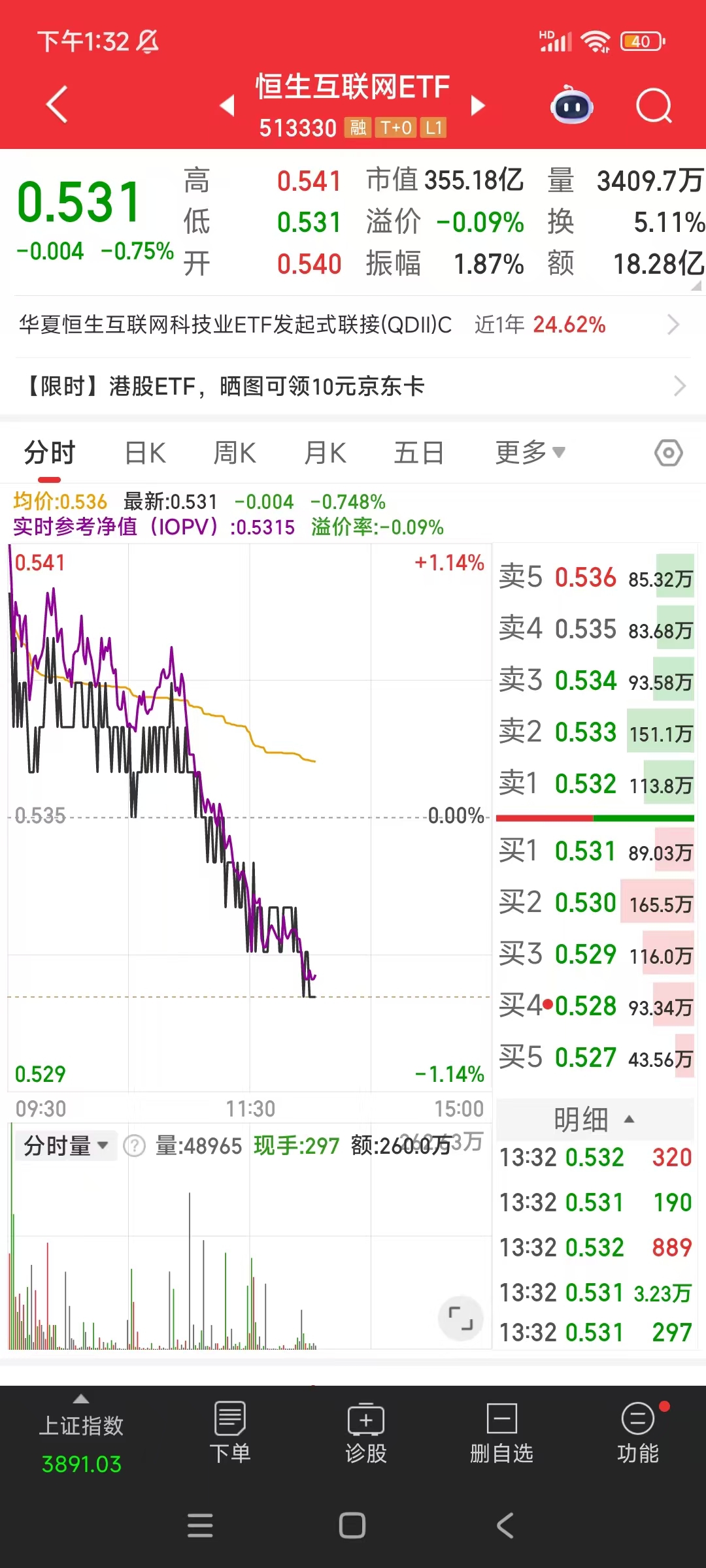 $恒生互联网ETF(SH513330)$ 528买1/4仓,赌一把