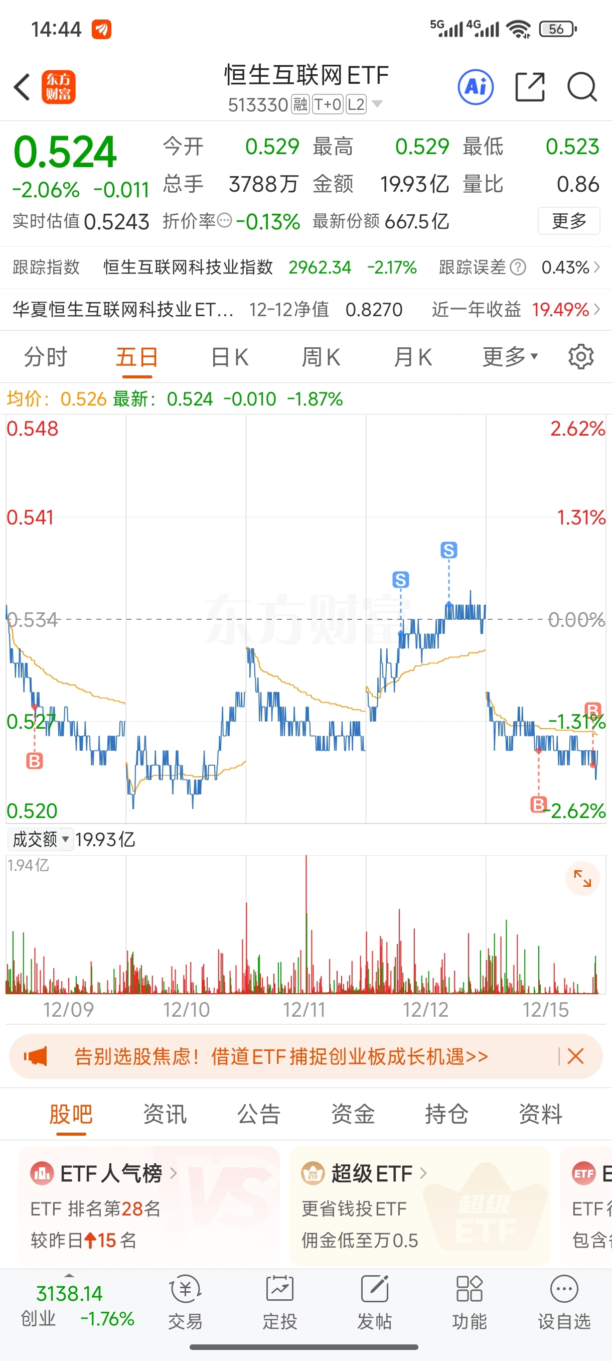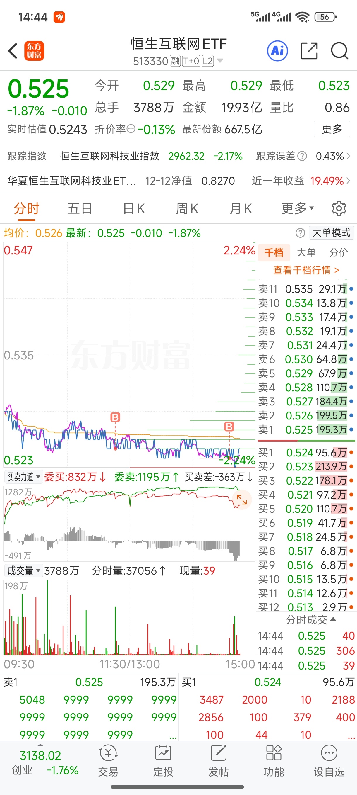 $恒生互联网ETF(SH513330)$ 头比较铁,还在往里面冲,幻想拉升。