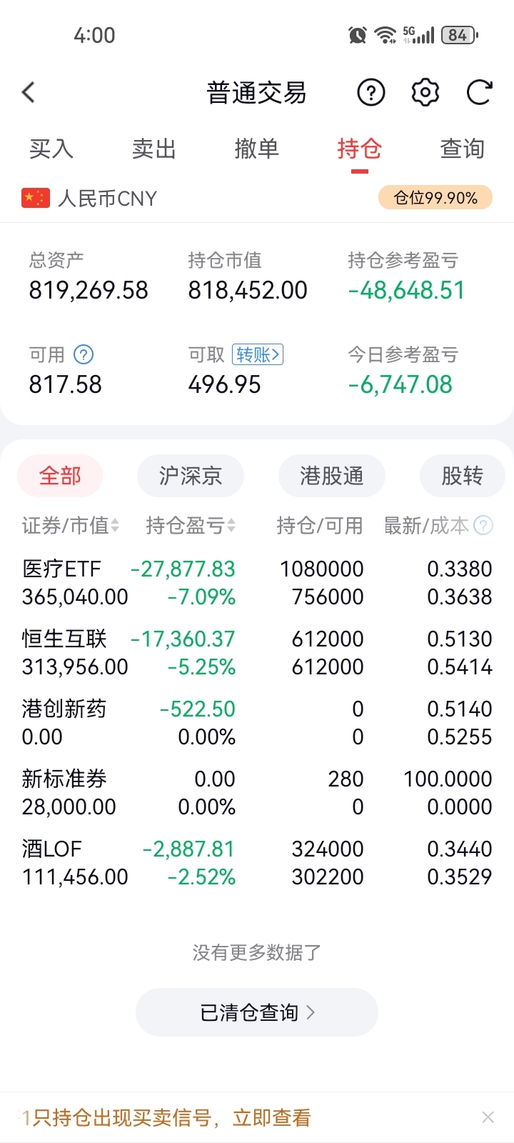 今天清仓了仓新药