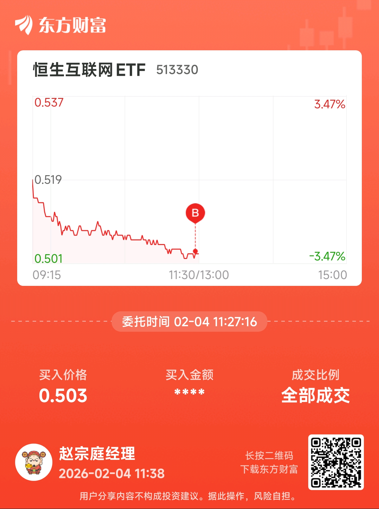 温馨提示: 1.根据《证券法》规定,禁止编造、传播虚假信息或者误导性信息,扰乱证券市场;2.用户在本社区发表的所有资料、言论等仅代表个人观点,与本网站立场无关,不对您构成任何投资建议。用户应基于自己的独立判断,自行决定证券投资并承担相应风险。《东方财富社区管理规定》
