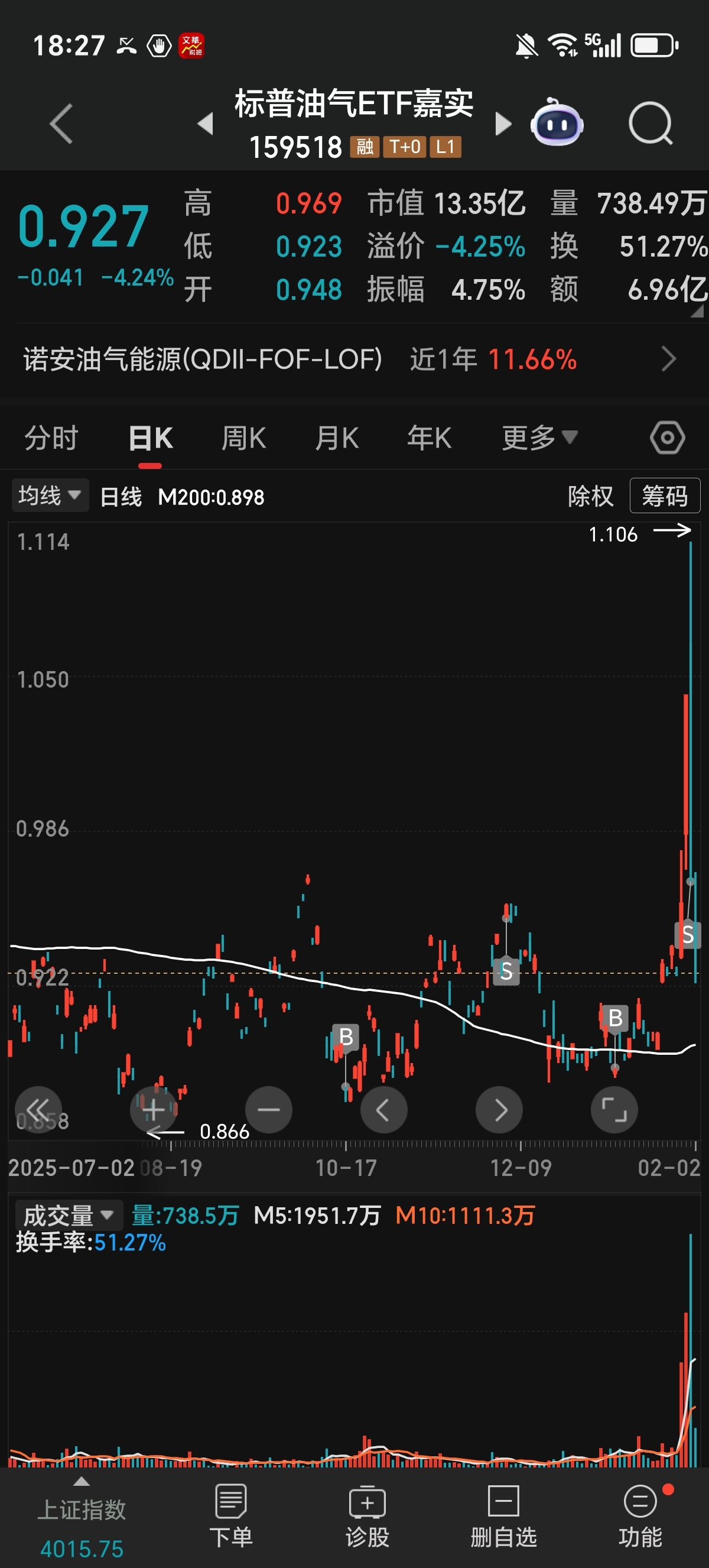 $标普油气ETF(SH513350)$ 原油一靠近55就接,美国自己的页岩油就是这个成本附近,跌多了美国油企就要