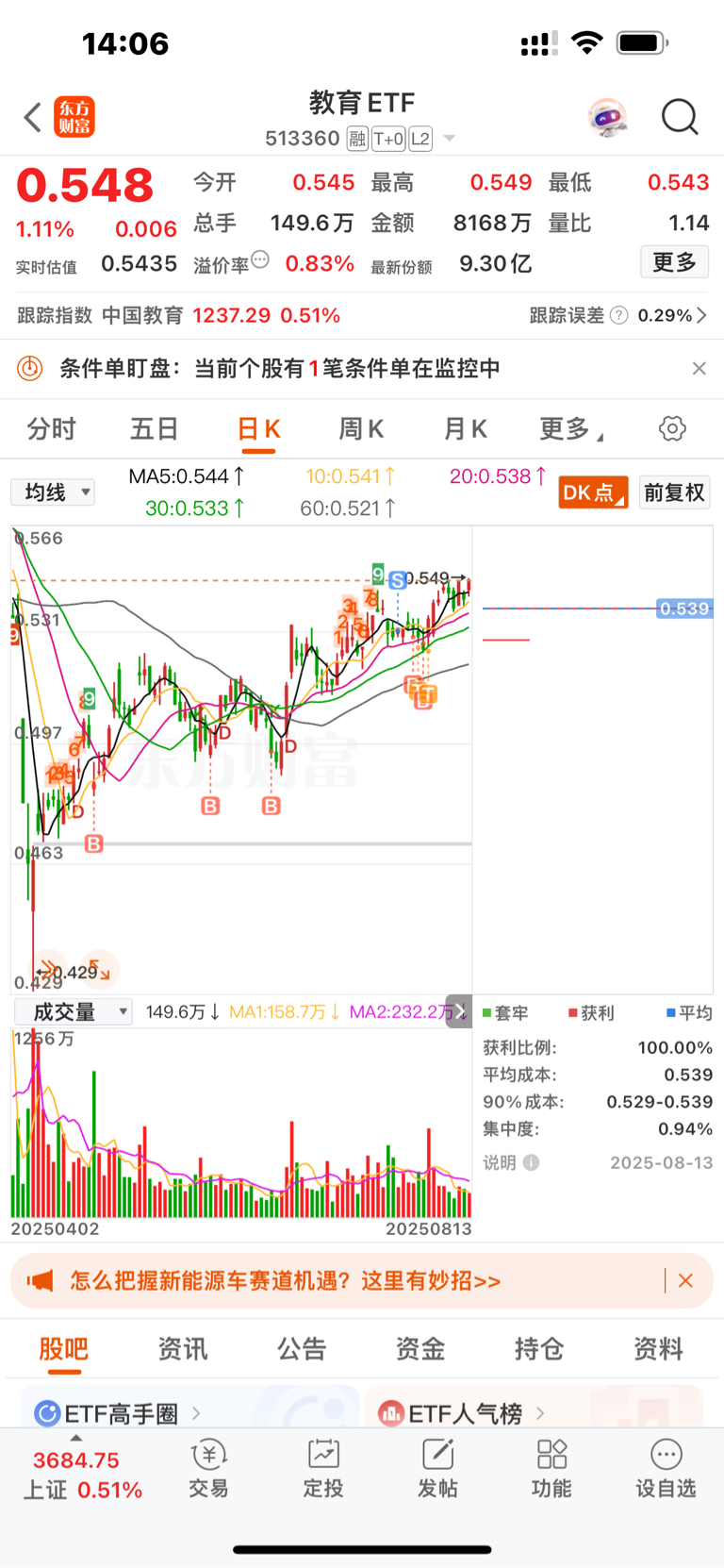 $教育ETF(SH513360)$ 妈勒个巴子的5.035清的、留个底仓合着能接回来、一发不可收拾了、接不回来了短期、那就等吧、去别的地方找个坑建仓等着你。