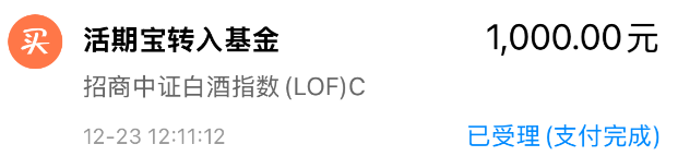 我加仓$招商中证白酒指数(LOF)C$1000元,跟踪的白酒指数这会看跌0.3%左右,价格低到没朋友了,我继续分批低吸了,希望能稳住别破前低哦,看后面促消费政策能不能继续上,具体投资逻辑中午专门发贴解读过了,可主页回看。