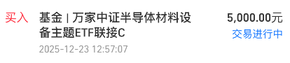 我加仓$万家中证半导体材料设备主题ETF发起式联接C(OTCFUND|023829)$5000元!跟踪的半导体材料设备指数昨天大涨4.81%,成功站稳多条均线之上,今天盘中继续涨超2%!这里已经有向前高突破的态势了,我继续做多。