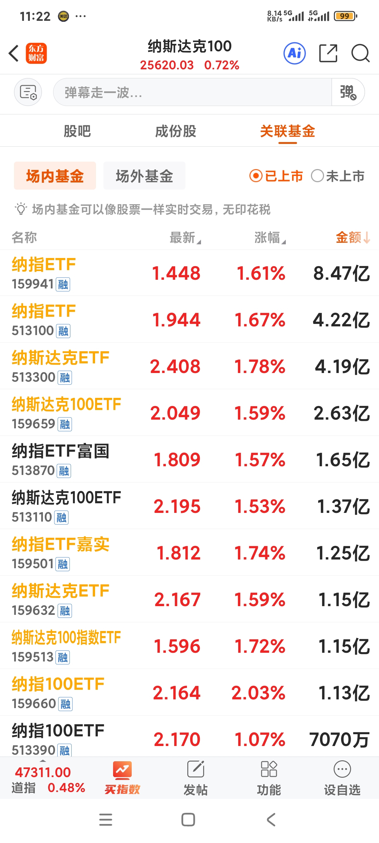 $纳指100ETF(SH513390)$ 这个是假的吗?怎么其他都涨了这么多,就只有一个涨这么一点。