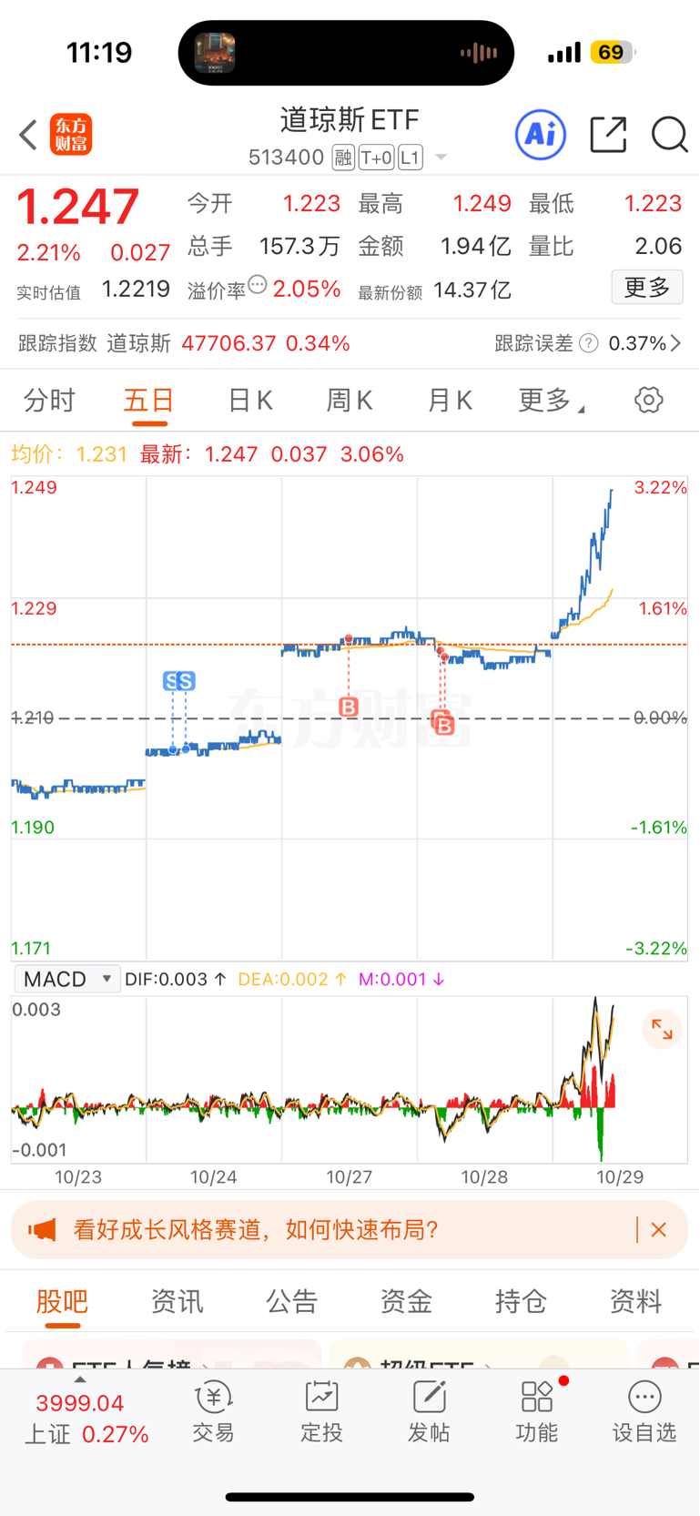 $道琼斯ETF(SH513400)$ 卧槽。还好我把仓位加回来了,这下真不敢随便卖了