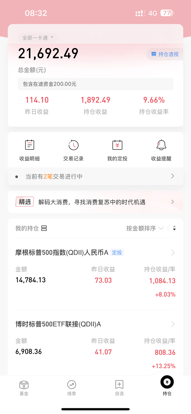 场外标普500,一个买入后不动,一个每日定投100希望能坚持下去