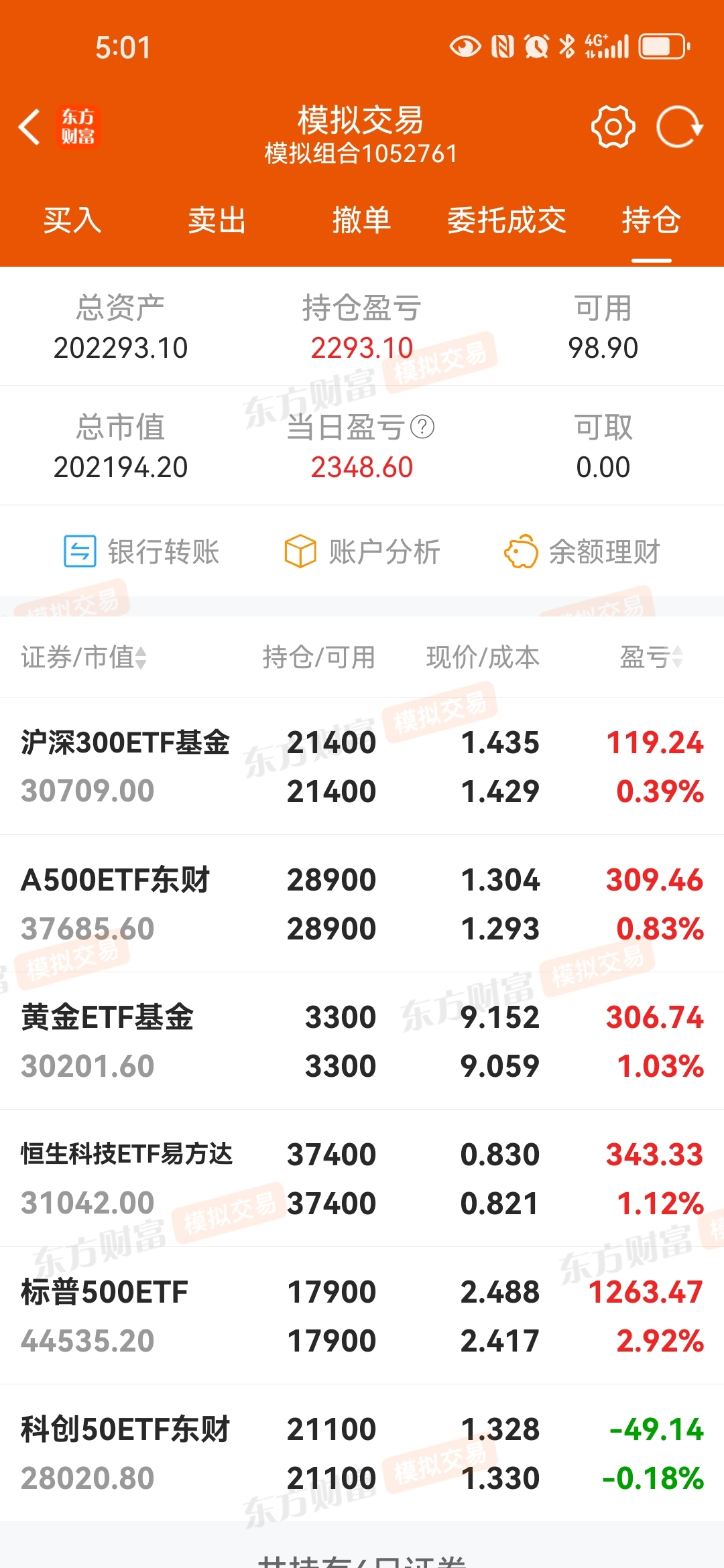 今天终于彻底翻盘除一支基金外,其他ETF都飘红,$标普500ETF(SH513500)$ 依然是那个最靓的仔。今天想高价卖出标普500,由于出价太高,没有成交变成费单。明天继续努力。