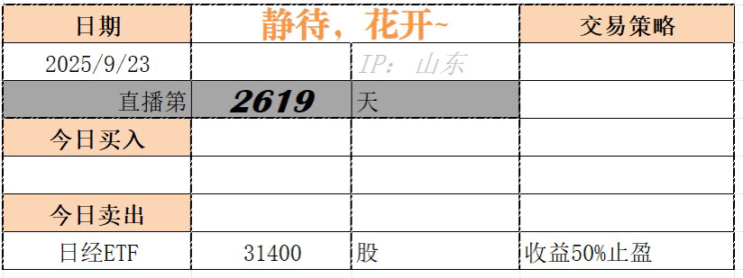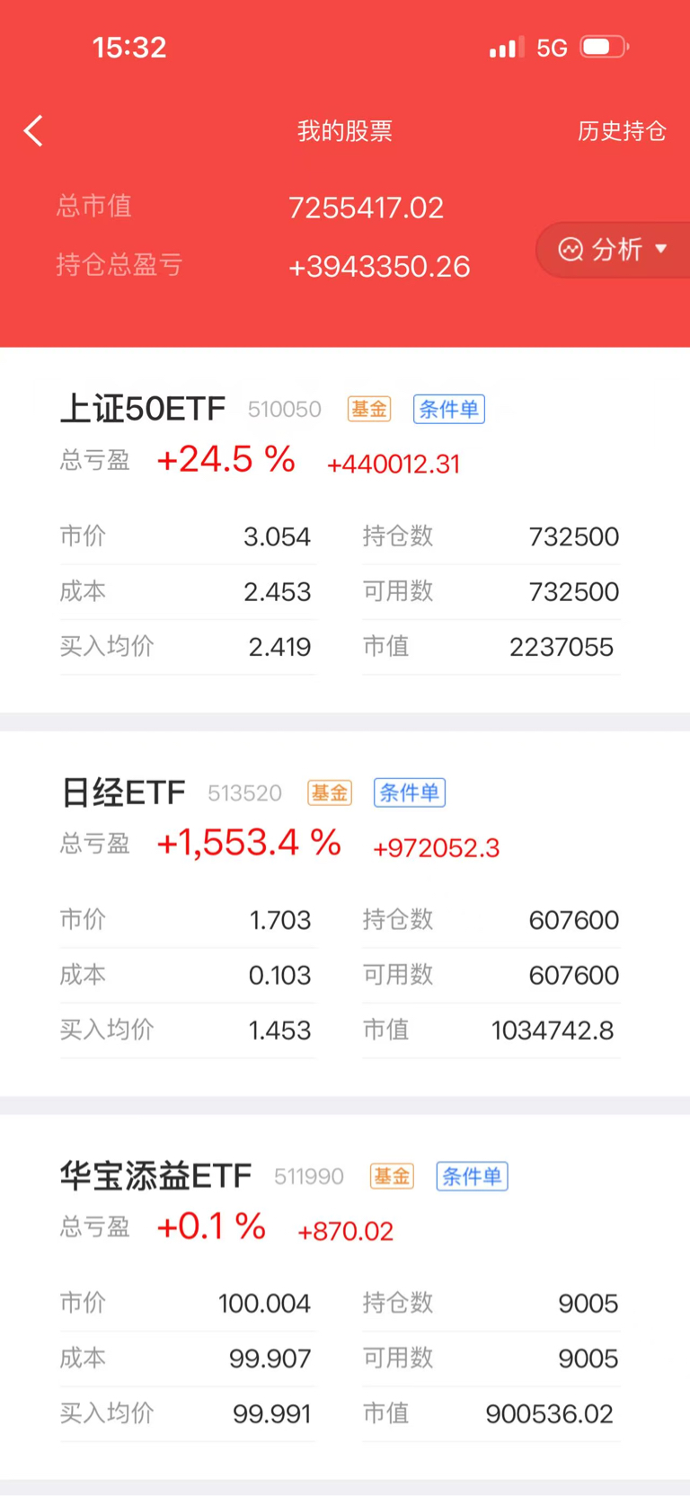 定投第2619天,今日卖出日经ETF31400股,今日盈亏+1.45万元,累计盈亏+394万元,静待花开~(实盘,原创,无小号)