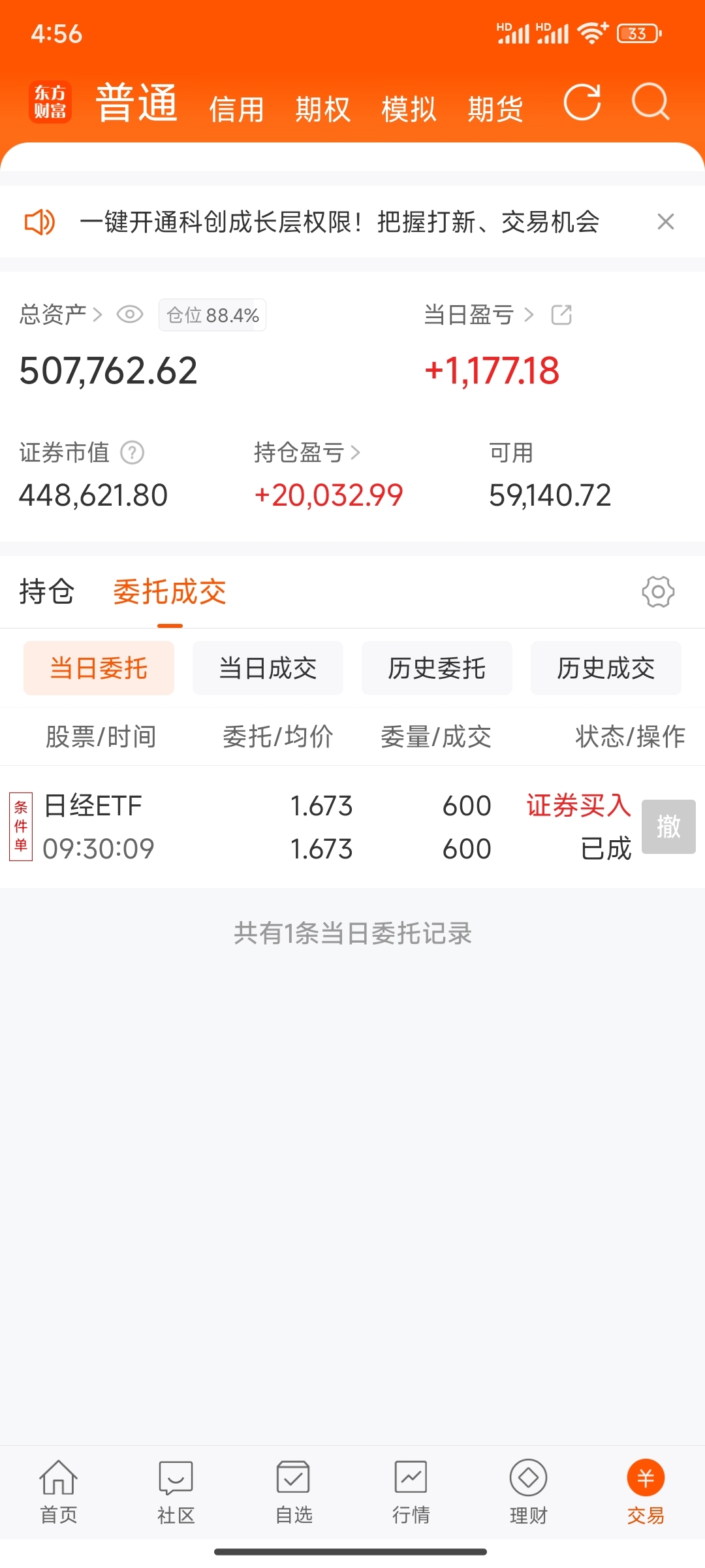 $日经ETF(SH513520)$ 定投第165天,买入日经600股,今日盈亏+1177,总盈亏+20032。#炒股日记# #实盘记录# #复盘记录# #投资干货#